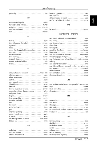 to use [the alley to carry] . . . . . . . . . . . . . . .ישומתשיאל with [vegetable] stalks . . . . . . . . . . . . . . . . . . .תוחלוקב make the chuppah at the wedding . . . . . . . . . אננג ינב gazed [at the shore] . . . . . . . . . . . . . . . . . . . . . .לכתסמ