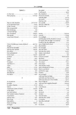 he began . . . . . . . . . . . . . . . . . . . . . . . . . . . . . . . . . .לחה to search . . . . . . . . . . . . . . . . . . . . . . . . . . . . . . . . .שפחל let [the kernels] soak . . . . . . . . . . . . . . תיתל ימנ תתלימ sponge-like [bread] . . . . . . . . . . . . . . . . . . . . . ןינגפוסה