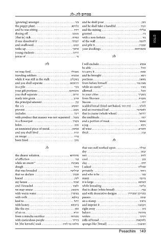 he began . . . . . . . . . . . . . . . . . . . . . . . . . . . . . . . . . .לחה to search . . . . . . . . . . . . . . . . . . . . . . . . . . . . . . . . .שפחל let [the kernels] soak . . . . . . . . . . . . . . תיתל ימנ תתלימ sponge-like [bread] . . . . . . . . . . . . . . . . . . . . . ןינגפוסה