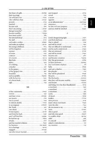 of a hem . . . . . . . . . . . . . . . . . . . . . . . . . . . . . . . אתפישד and urinate . . . . . . . . . . . . . . . . . . . . . . . . . . . . . ןיתשיו the fattened sheep . . . . . . . . . . . . . . . . . . . . . . . . . םירכ [only] disappearing light . . . . . . . . . . . . . . . . . . .תוקרי