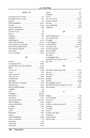 with Shavuos . . . . . . . . . . . . . . . . . . . . . . . . . . . .תרצעב the flock [of small animals] (ש״שר ןייע) . . . . . . . . ןאצה become fearful . . . . . . . . . . . . . . . . . . . . . . . . . . . תעבנ retroactively . . . . . . . . . . . . . . . . . . . . . . . . . . . . . ערפמל