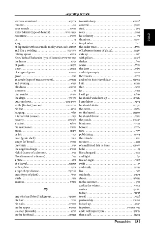 he saw . . . . . . . . . . . . . . . . . . . . . . . . . . . . . . . . . . . . הזח the gathering . . . . . . . . . . . . . . . . . . . . . . . . . . . . . ץובק cress (type of plant) . . . . . . . . . . . . . . . . . . . . . . . ילחת suddenly . . . . . . . . . . . . . . . . . . . . . . . . . . . . . . . . םואתפ