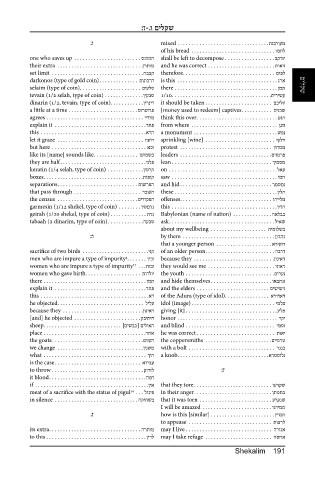 its sacrificial parts . . . . . . . . . . . . . . . . . . . . . . . .וירומיא dirty . . . . . . . . . . . . . . . . . . . . . . . . . . . . . . . . ןישטשוטמ a little at a time . . . . . . . . . . . . . . . . . . . . . . . . .טורטורפ [money used to redeem] captives . . . . . . . . . . . םיובש