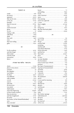 the surface [of the Kodesh Kodashim] . . . . . . ריבדה the flask . . . . . . . . . . . . . . . . . . . . . . . . . . . . . . . . . .ךפה half [a maneh] (type of coin) . . . . . . . . . . . . . . . .סרפ the flame . . . . . . . . . . . . . . . . . . . . . . . . . . . . . . . הדקומ
