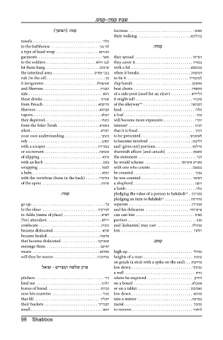 rub [in the oil] . . . . . . . . . . . . . . . . . . . . . . . . . . . . . .ךס to tie it . . . . . . . . . . . . . . . . . . . . . . . . . . . . . . . הירטקמל they would tremble. . . . . . . . . . . . . . . . . . . . . . . ןעתרמ with an irreligious person . . . . . . . . . . . . . . . . . רמומב
