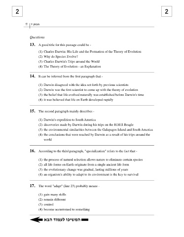 (2) Darwin was the first scientist to come up with the theory of evolution הנווכה שקבל םהילא םינופש םינוש םיליגב םירזל רוזעל םישנא לש תונעיהה תדימ תא קודבל (4)