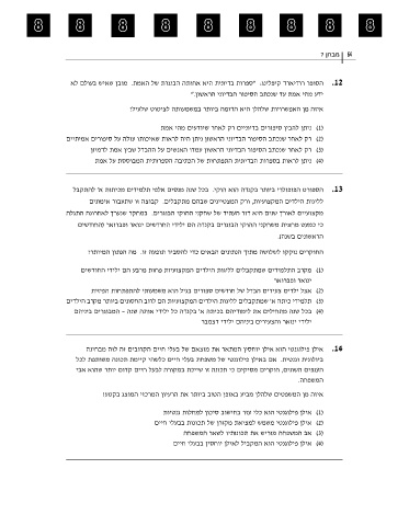 8 8 8 8 8 8 8 8 תיקוס ,תוצצפ 8 8 :17 15 תולאשל תוארוה תכרצנה רכוסה תומכש םשג 8 8 ,םשג ויתובסו ויבס דלונרא םא .הייקוסב ודלונ םהירוה ירוה הרקחמ תואצות .רכוס לש ודלונ / לכ םא אלא / יאכז אל / דלונ אל (1) 8 8 ודלונ / מ דחא לכ םא קר / יאכז / דלונ אל (3) ודלונ אל / מ םיינש םא וליפא / יאכז / דלונ (2) חיפו קבא תוחירמ ענומ / ןכש / השק / דרוי אל (3) חיפו קבא תוחירמ ענומ / ש ףא לע / לק / דרוי