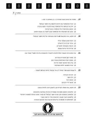 8 8 8 8 62 .8 .7 .6 .5 8 8 8 8 7 8 8 תקוש : זרב (2) היעשה : רטופ ףכוא : אסכ (3) ריצח : הטיח (4) סובא : תחלצ (1) הריכמ : רכשוה (3) הייפיצ : שאונ (4) הלאשה : קנעוה (1) תולצנתה : חלסנ (2) .היעבה תא רותפל ,ותעדל 8 8 ?עטקב תגצומה תיזכרמה הנעטה יהמ (17 7 תולאש) הקסהו הנבה תולאש ותנעט תא ססבל ידכ םגתפב רזענ לטיאס (1) 8 8 םימגתפ שמתשהל ילבמ םירחא םדא