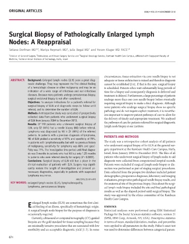 IMAJ 2018; 20: 674–678 evaluations, preoperative pathological needle biopsy results, and