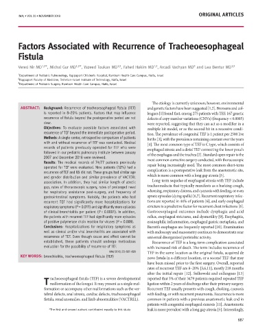 Correspondence 7. Parker JC, Bunn CC. Sensitivity of the Phadia Elia connective tissue disease screen factors Associated with Recurrence of Tracheoesophageal