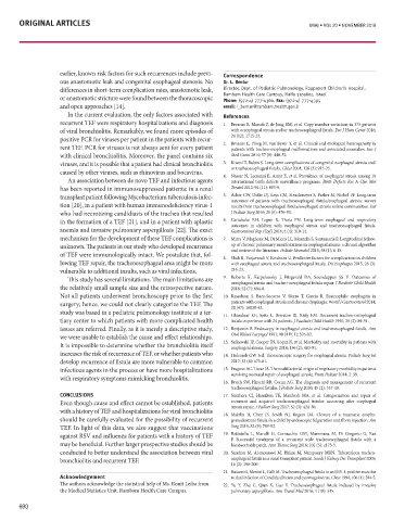 issues are referred. Finally, as it is merely a descriptive study, 12. Benjamin B. Endoscopy in esophageal atresia and tracheoesophageal fistula. Ann