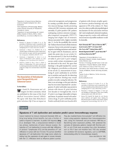 To the Editor: genesis. H. pylori antibodies may persist in all-cause mortality among colorectal cancer patients 687 Factors associated with recurrence of PET/CT in a patient with acute lymphoblastic