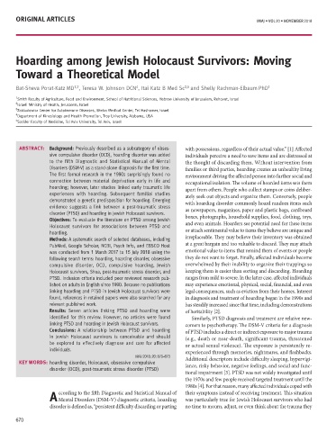 A Mental Disorders (DSM-V) diagnostic criteria, hoarding was particularly true for Jewish Holocaust survivors who had Eitan Israeli PERFECTOR