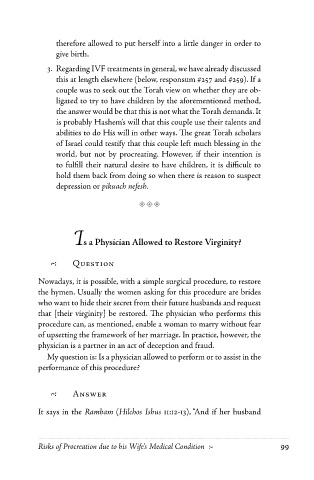 98 1 Medical-HalacHic Responsa of Rav ZilbeRstein Risks of Procreation due to his Wife’s Medical Condition 2 99