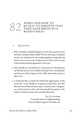 86 1 Medical-HalacHic Responsa of Rav ZilbeRstein Parents Gave Birth to a Blind Child 2 111