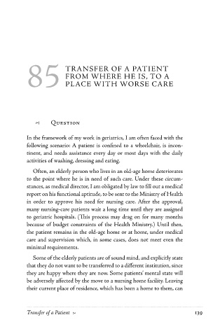 122 1 Medical-HalacHic Responsa of Rav ZilbeRstein Transfer of a Patient 2 139