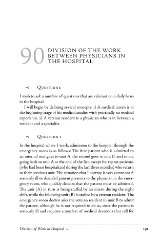 198 1 Medical-HalacHic Responsa of Rav ZilbeRstein Division of Work in Hospital 2 191