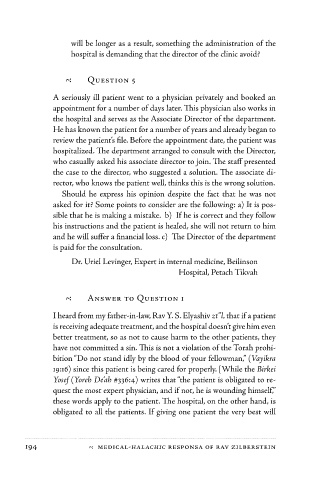 194 1 Medical-HalacHic Responsa of Rav ZilbeRstein Division of Work in Hospital 2 195