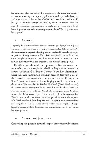 192 1 Medical-HalacHic Responsa of Rav ZilbeRstein Division of Work in Hospital 2 197