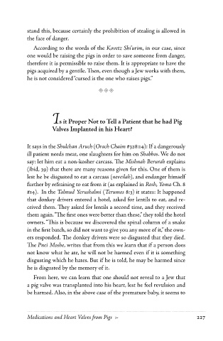 226 1 Medical-HalacHic Responsa of Rav ZilbeRstein Medications and Heart Valves from Pigs 2 227