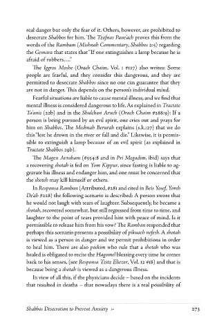 244 1 Medical-HalacHic Responsa of Rav ZilbeRstein Shabbos Desecration to Prevent Anxiety 2 273