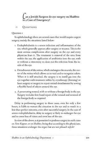 280 1 Medical-HalacHic Responsa of Rav ZilbeRstein Shabbos in an Ophthalmology Department 2 301