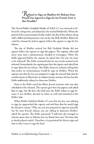 336 1 Medical-HalacHic Responsa of Rav ZilbeRstein Shabbos in an Ophthalmology Department 2 309