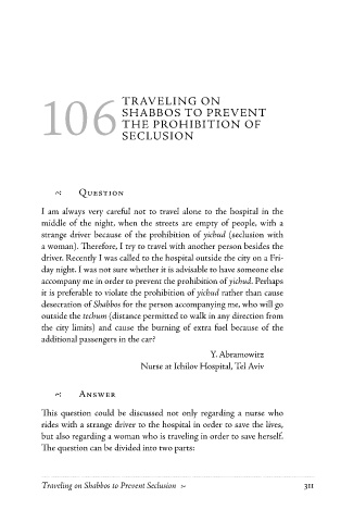 334 1 Medical-HalacHic Responsa of Rav ZilbeRstein Traveling on Shabbos to Prevent Seclusion 2 311