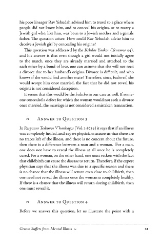 48 1 Medical-HalacHic Responsa of Rav ZilbeRstein Groom Sufers from Mental Illness 2 21