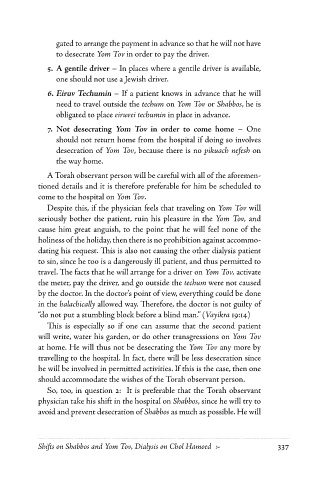 308 1 Medical-HalacHic Responsa of Rav ZilbeRstein Shifts on Shabbos and Yom Tov, Dialysis on Chol Hamoed 2 337