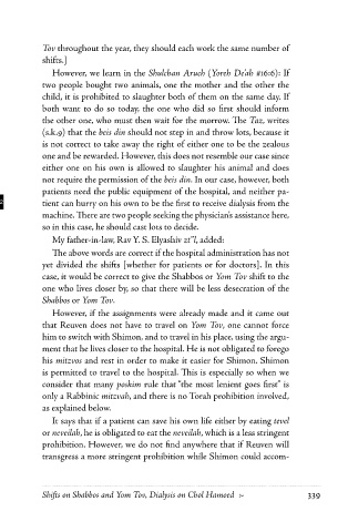 370 1 Medical-HalacHic Responsa of Rav ZilbeRstein Shifts on Shabbos and Yom Tov, Dialysis on Chol Hamoed 2 339