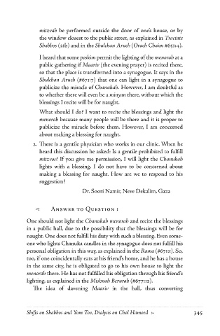 364 1 Medical-HalacHic Responsa of Rav ZilbeRstein Shifts on Shabbos and Yom Tov, Dialysis on Chol Hamoed 2 345