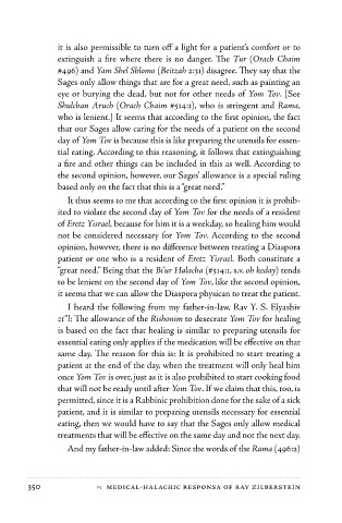350 1 Medical-HalacHic Responsa of Rav ZilbeRstein Shabbos Desecration by a Physician Who Says there is No Danger 2 359