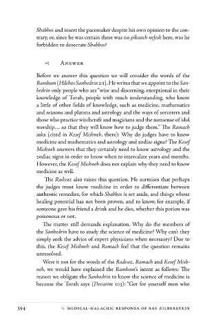 354 1 Medical-HalacHic Responsa of Rav ZilbeRstein Shabbos Desecration by a Physician Who Says there is No Danger 2 355