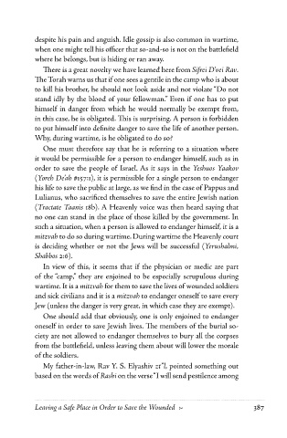 402 1 Medical-HalacHic Responsa of Rav ZilbeRstein Leaving a Safe Place in Order to Save the Wounded 2 387