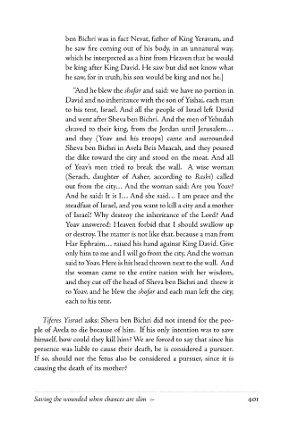 be willing to endanger himself in this way to save the life of his Tiferes Yisrael asks: Sheva ben Bichri did not intend for the peo-