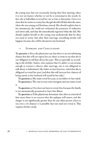 36 1 Medical-HalacHic Responsa of Rav ZilbeRstein Revealing a bride's earlier attempt at suicide 2 33
