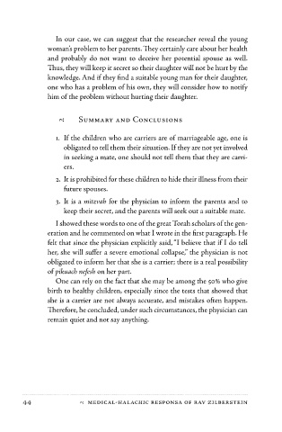 1 SuMMaRy and Conclusions then we can permit the groom to conceal his problem from his bride.