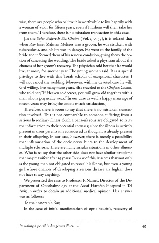 20 1 Medical-HalacHic Responsa of Rav ZilbeRstein Revealing a possibly dangerous illness 2 49