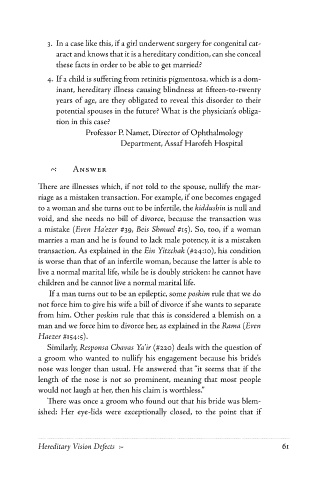 72 1 Medical-HalacHic Responsa of Rav ZilbeRstein Hereditary Vision Defects 2 61
