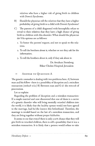 64 1 Medical-HalacHic Responsa of Rav ZilbeRstein Hereditary Defects 2 69