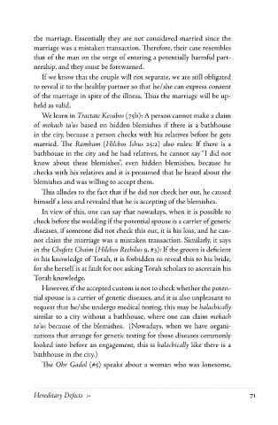 condition to her husband. However, being that they are already mar- of mekach ta’us based on hidden blemishes if there is a bathhouse