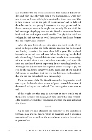 learned that she had been sick even before the wedding, but she had There are illnesses which, if not told to the spouse, nullify the mar-