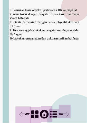 6. Posisikan lensa obyektif perbesaran 10x ke preparat