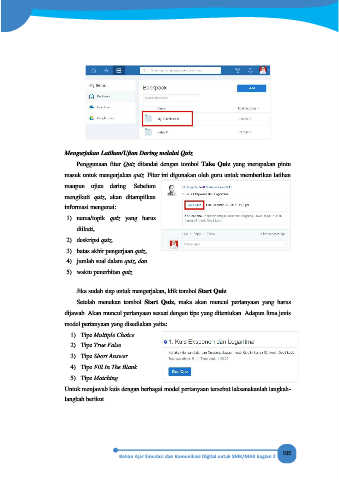 Penggunaan fitur Quiz ditandai dengan tombol Take Quiz yang merupakan pintu
