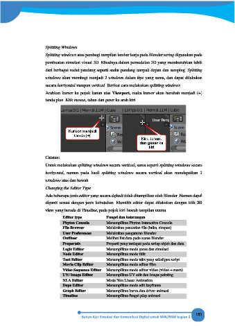 Splitting windows atau pembagi tampilan lembar kerja pada Blender sering digunakan pada