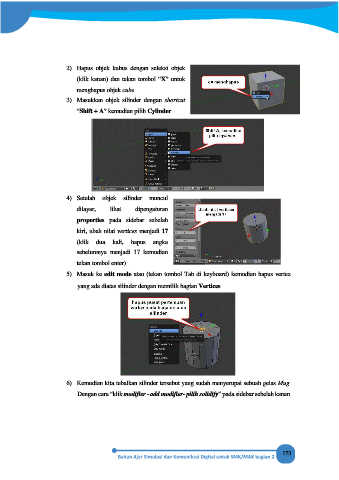 yang ada diatas silinder dengan memilih bagian Vertices.