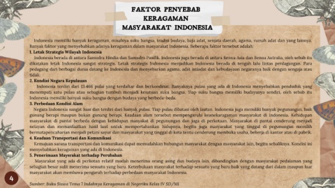 Banyak faktor yang menyebabkan adanya keragaman dalam masyarakat Indonesia. Beberapa faktor tersebut adalah: