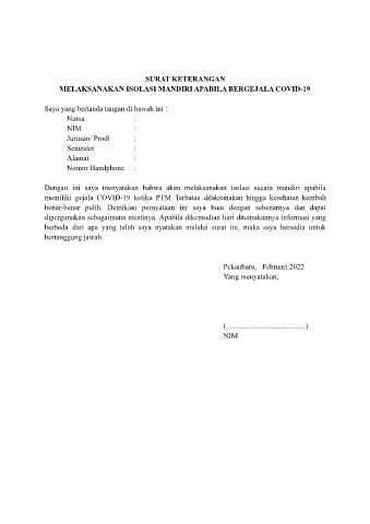 Dengan ini saya menyatakan bahwa akan melaksanakan isolasi secara mandiri apabila