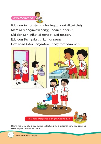 Orang tua meminta siswa bercerita tentang jenis kegiatan yang dilakukan di